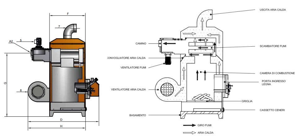 Arca wood and pellet hot air generator 50, 70, 100, 150, 250 kW